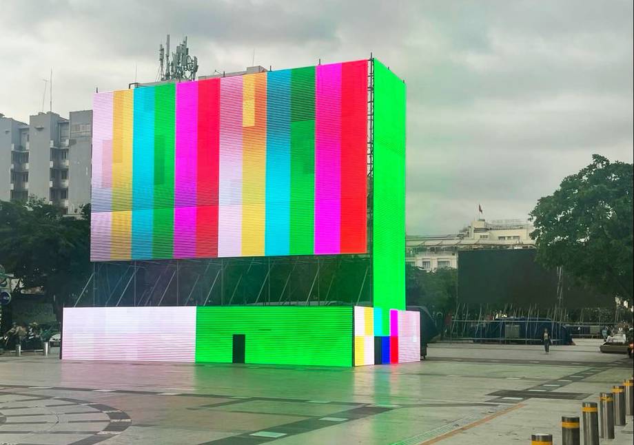 5 màn hình led kích thước lớn được lắp tại phố đi bộ Nguyễn Huệ để phục vụ người hâm mộ xem các trận đấu của tuyển U23 Việt Nam tại SEA Games 31.