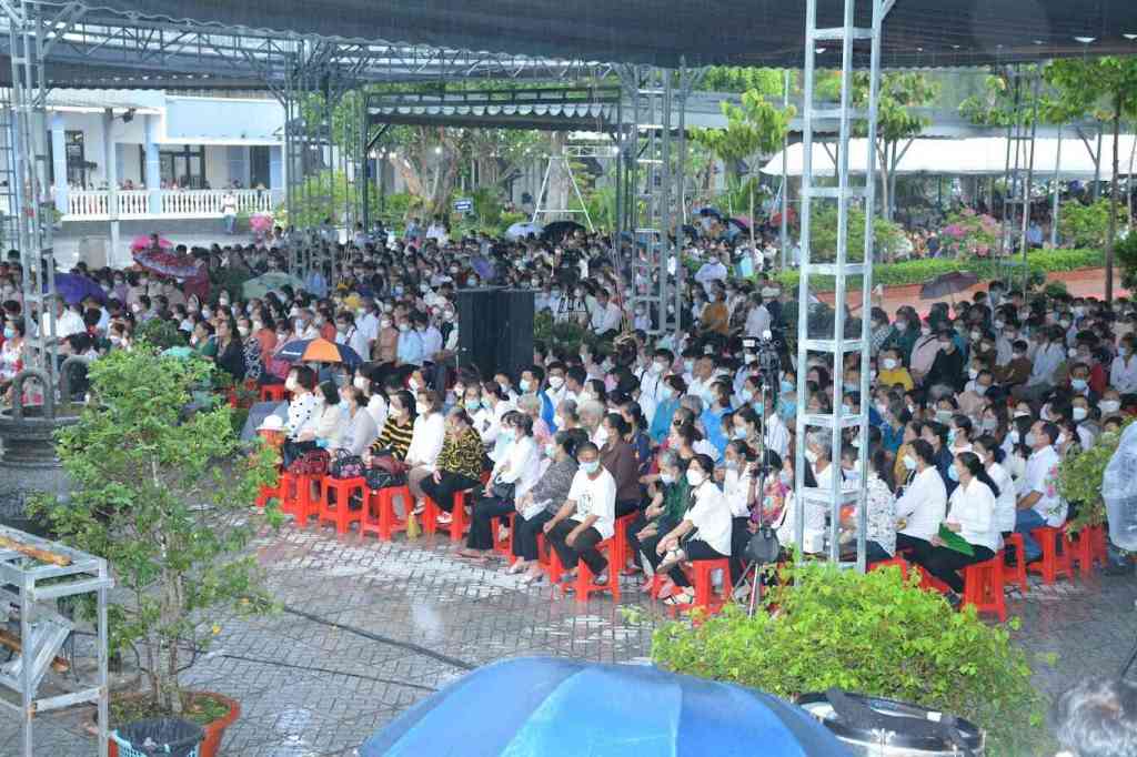 Đến tối, mọi người cùng với Dòng Mến Thánh Giá Cái Mơn, Mến Thánh Giá Cái Nhum, Dòng Thánh Phaolô (Tỉnh Dòng Mỹ Tho) cùng nhau hiệp thông và cầu nguyện với Mẹ trong giờ canh thức và kiệu Đức Mẹ…